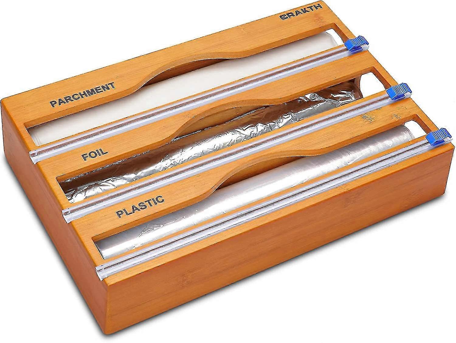 Bamboo Wrap Dispenser With , 3 In 1 Stora Izer For Foil Cling Parchment