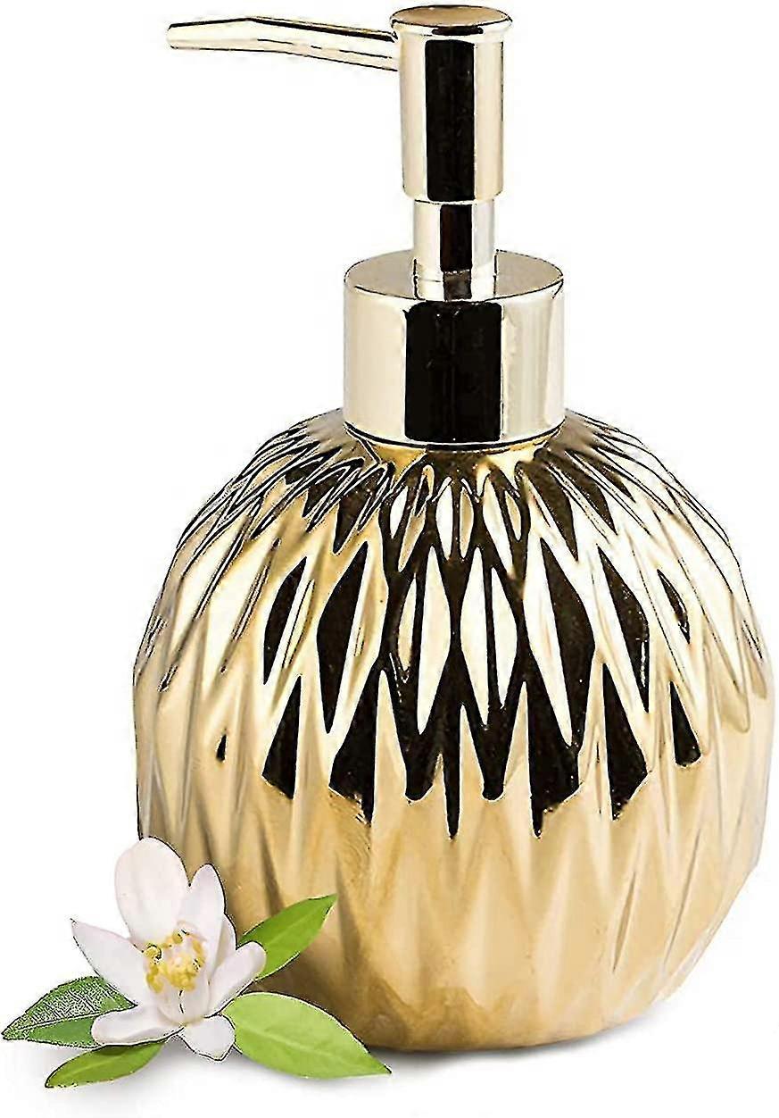 Sleek Design: The Gold Ceramic Soap Dispenser Is A Great Addition To Your Modern Farmhouse Decor Built To Last: The Soap Dispenser Was Built To Last For Years. The Base Is Made Of Durable Ceramic, The Rough Design Of The Ceramic Bottom Keeps The Soap Dispenser Stable And Non-Slip. The Pump Is Made Of Sturdy Plastic That Is Corrosion Resistant And Will Not Rust For Life.Perfect For Kitchen Counters - Ideal For Hand Soap, Liquid Soap, Sanitizers, Etc. You Can Use It As A Kitchen Soap Dispenser Or Fill It With Lotion As A Practical Firm Style Soap Dispenser For The Bathroom.Measures 11.4Cm Tall, 8.9Cm Wide Diameter. Each Dispenser Pump Holds 13 Ounces Of Liquid Soap. Reusable And Rechargeable, Eco-Friendly, Economical. It& 39;S Also A Great Gift Idea For Your Family And Friends.Satisfaction Guaranteed: Simply Contact Customer Service If You Have Any Issues. We Support 30 Days Money Back.",