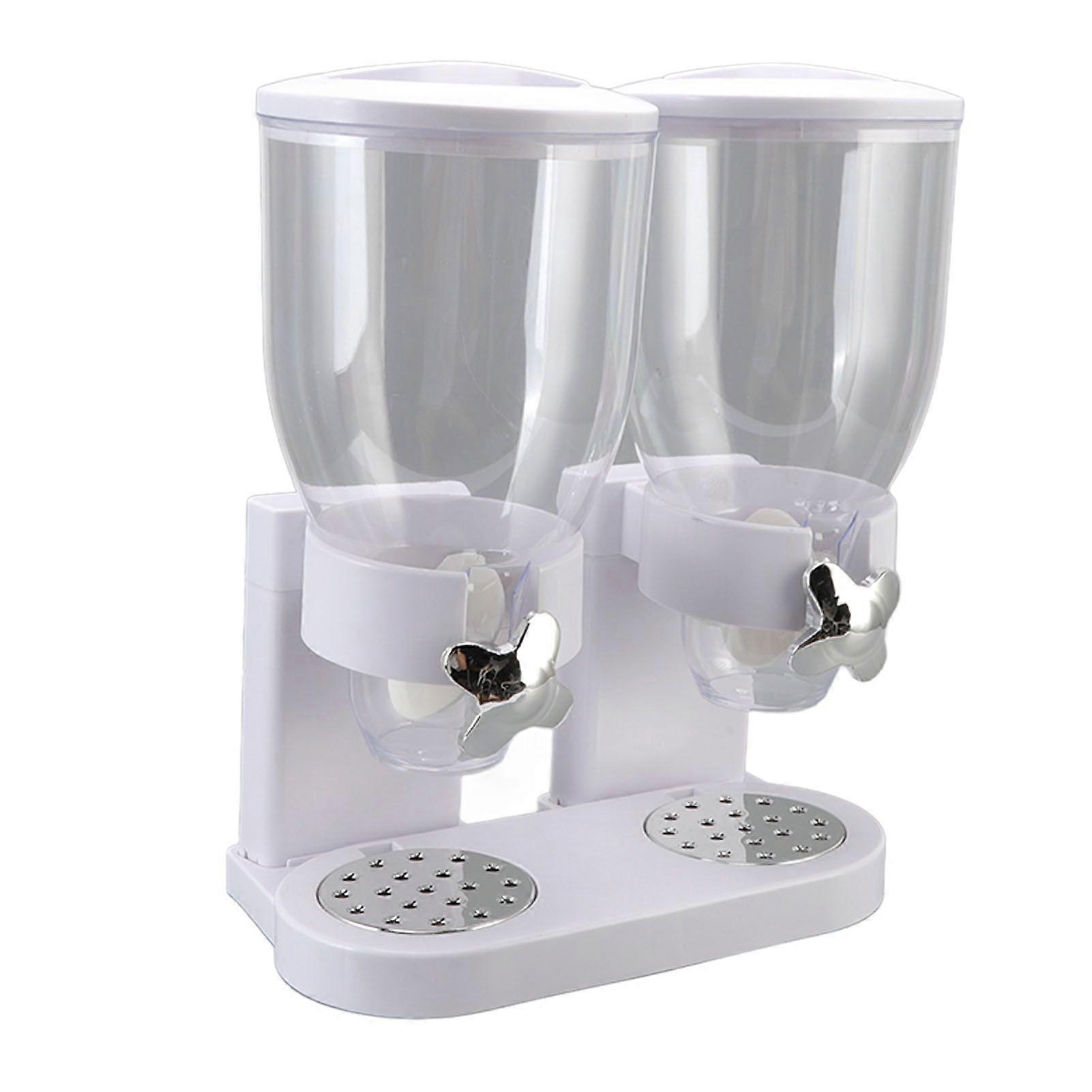Cereal Dispenser ABS Dual Containers Airtight Twist Operation Dry Food Dispenser for Kitchen White