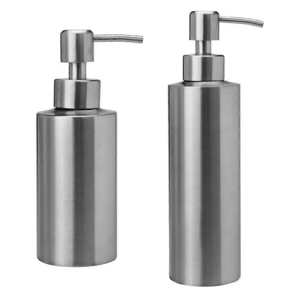 Bathroom Hand Soap Dispenser Refillable 304 Stainless Steel Cylindrical Lotion Holder for Household Users Silver 350ml 2Pcs