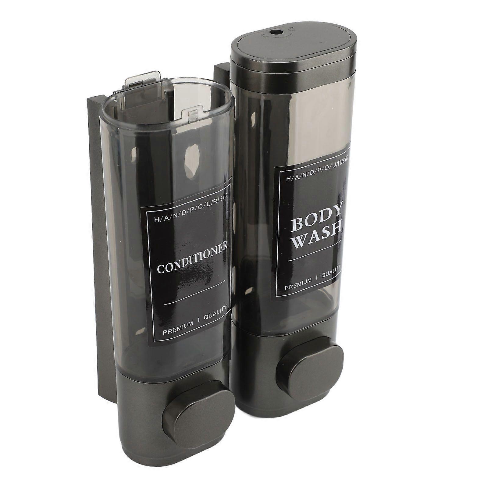 Press Pump Soap Dispenser Wall Mounted 300ml ABS Dual Head Transparent View Shampoo Dispenser Gray