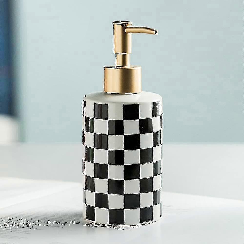 Gold Matte Pump Ceramic Soap Dispenser with Checkered Design for Bathroom and Kitchen Use