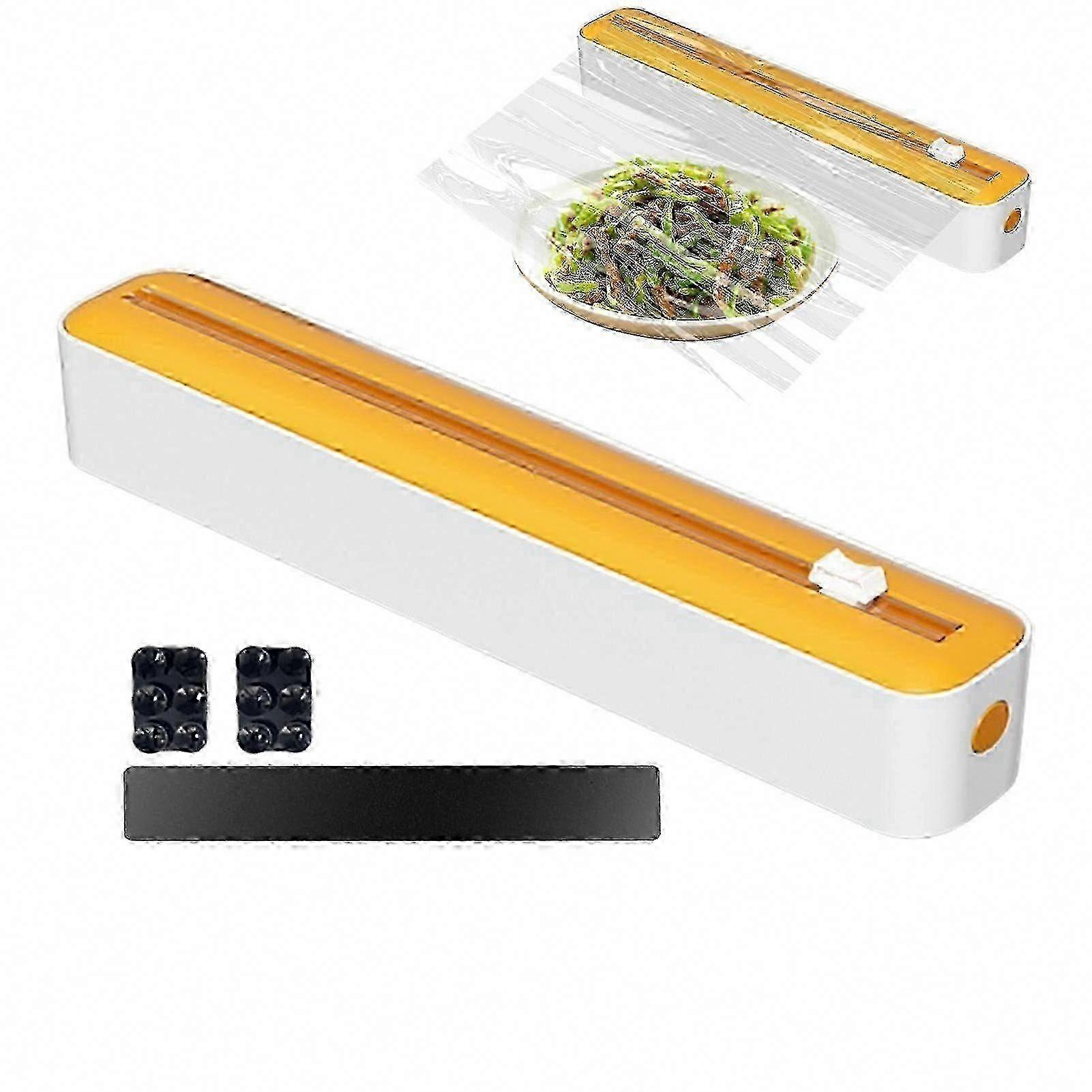 Refillable Plastic Wrap Dispenser with Slide Cutter - BPA-Free Magnetic Cling Film Holder for All Brands