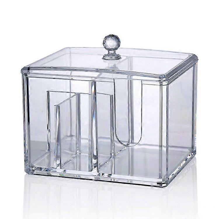 Cotton Ball Dispenser, Makeup Cotton Storage Box Cotton Pad Organizer Swab Holder Acrylic Cosmetic Storage Box with Lid, 4 Compartments