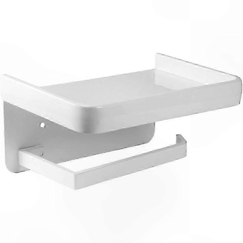 Bathroom and Kitchen Wall Mount Paper Roll Dispenser with Aluminum Shelf (White)