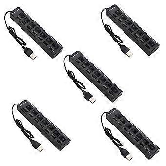 موسع محور USB 7 منافذ بالأبيض والأسود مع محور إضاءة التبديل 7 منافذ محطة إرساء 5 قطع