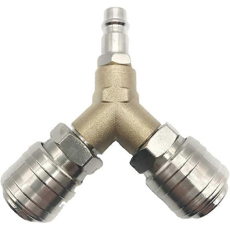 Compressed Air Connector, Compressed Air Switch, with Two 1/4" Threaded Connectors, Made of Rust Resistant Brass