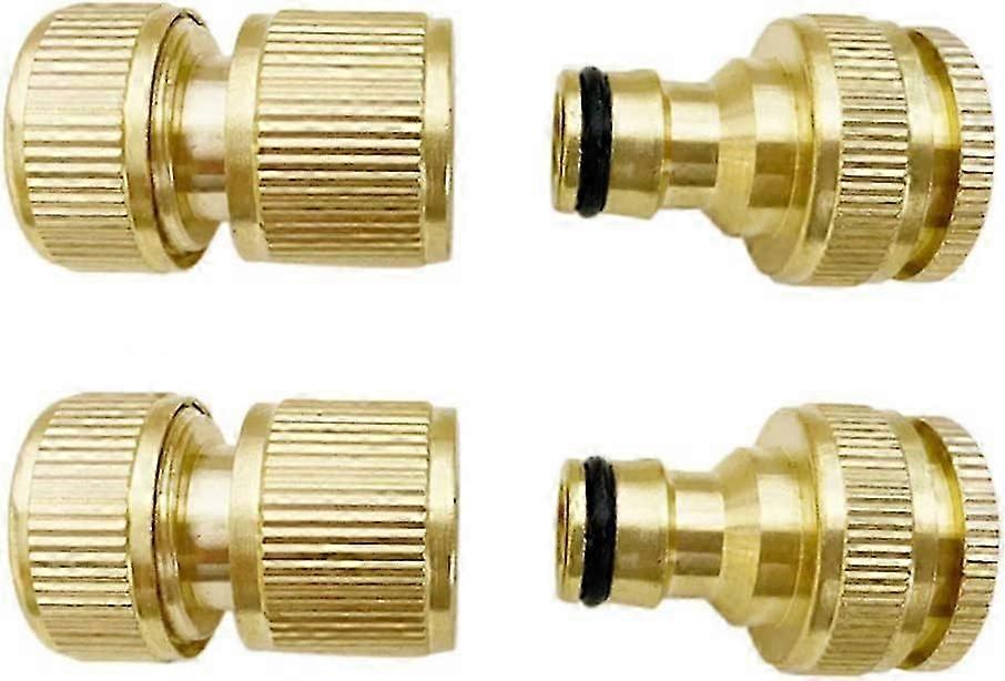 Garden Hose Connector, 4 Pack Brass Hose Connector, 4 Pack Brass Tap Nose Hose Connector 1/2 and 3/4 External Thread