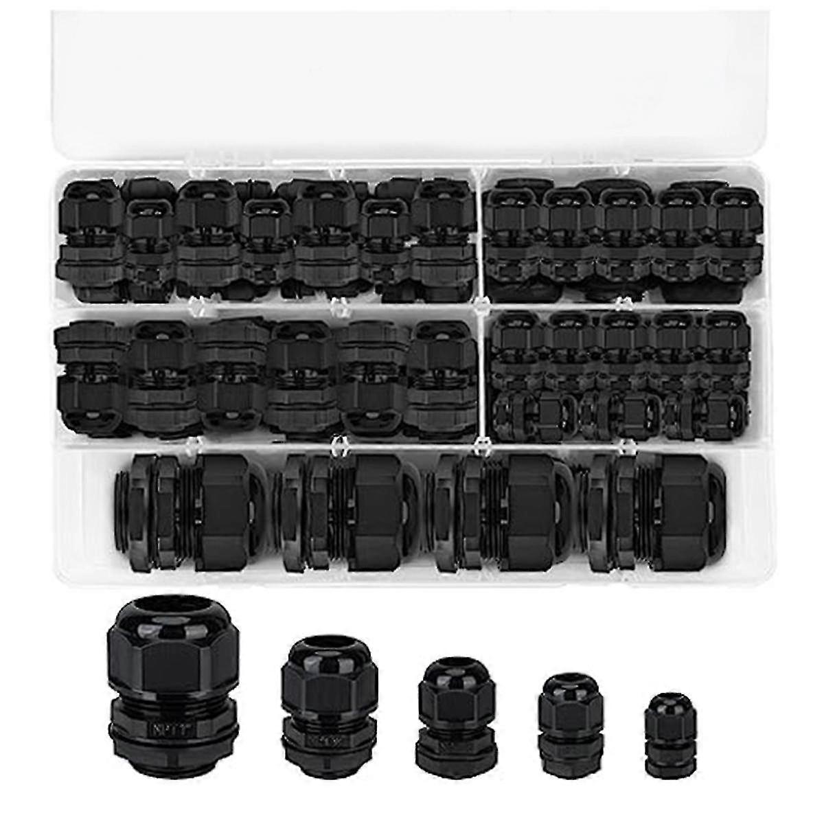 Waterproof Cable Gland Npt Adjustable Cable Connector 1/4in 3/8in 1/2in 3/4in1in For Waterproof Junction, 52 Pcs