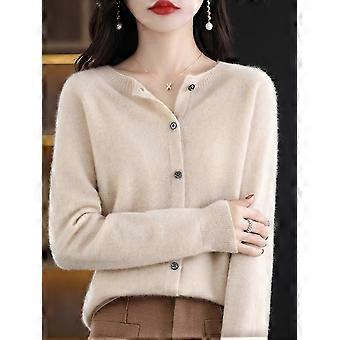 New Fashion Spring 100% Merino Wool Womens O-neck Cardigan Cashmere Sweater 2024 Female Clothing Grace Knitwear Korean Tops