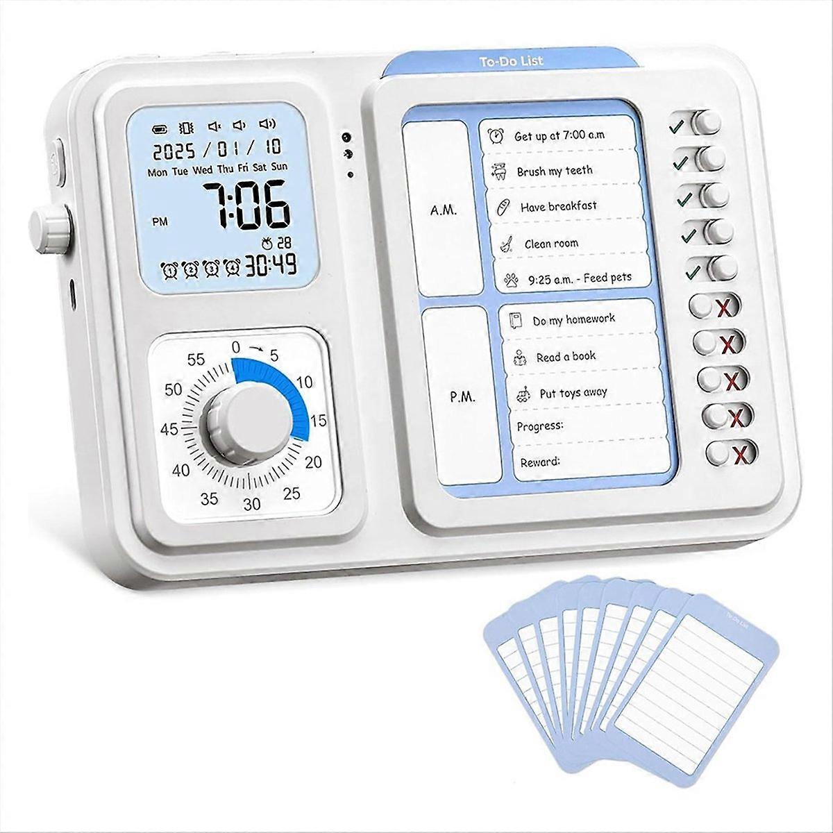 [Visual Timer for ]: This time management tool combines visual timer, digital clock, and chore chart, helping both kids and adults stay on schedule. Designed for kids with ADHD, , and special needs, this productivity timer ensures a distraction-free, making it ideal for classrooms and study areas [Task ADHD Planner & Chore Board]: It also features a to-do list and chore board, helping kids manage daily activities like homework, study sessions, and household chores. Parents and teachers can create structured schedules, making time management fun and effective [Silent, Vibration, Ringing Modes]: Choose silent visual cues, vibration, or adjustable alarms to match different needs. Perfect for home, school, library, and quiet spaces, this silent countdown timer helps children stay on track without unnecessary noise, ensuring they can focus on their tasks [Easy & Intuitive Time Management]: The clear circular display visually represents time, making it easy for kids to follow routines and build self-discipline. Featuring an adjustable alarm and Pomodoro timer, it helps improve focus and productivity. Simple to set with a dial or button, this desk-friendly timer supports better time habits for children and adults alike [Ideal Gift & Special Needs Support]: A great tool for learning and building independence, perfect for kids, students, and adults. Supports ADHD, autism, and special needs learners, helping them organize tasks and improve self-regulation. A thoughtful gift for back-to-school, birthdays, homeschool, or daily routines Color: White Material: plastic Package Contents: 1 * Visual Timer 15 * punch cards Only the above package content, other products are not included. Note: Light reflection and different displays may cause the color of the item in the picture a little different from the real thing. The measurement allowed error is +/- 1-3cm.