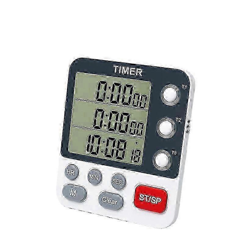 TRIPLE KITCHEN TIMER: The digital timer with 3 channels can display three events at the same time. It can also serve as a stopwatch and time up to 99 hours, 59 minutes and 59 seconds. Perfect timer for cooking, grilling, baking, training, gym, sports, homework, games, children's activities and meetings. LARGE DISPLAY: The dual kitchen timer with screen protector and high-contrast large display and clearer bold numbers is easy to read in the kitchen or anywhere. Memory function: our digital kitchen timer will restore the last countdown time after the timing is complete. You can also long press the "M" button to set a reuse time that you need for memory time, then simply press the "M" button to increase the memory time automatically. Adjustable volume and flashing light: easy to adjust the alarm volume by switching (high/low/mute) according to your needs. Loud alarm sound and red flashing mode to ensure nothing is forgotten; mute and red light flashing mode to ensure it does not disturb others. Multiple placement options: the 3 groups kitchen timer has a strong magnetic back, a pull-out stand and a hanging hole. It is convenient to place in three ways, especially its 3 strong magnets that work well on the fridge. Note: Due to the light and screen setting difference, the item's color may be slightly different from the pictures. Please allow slight dimension difference due to different manual measurement. Sold by-Dadangjia