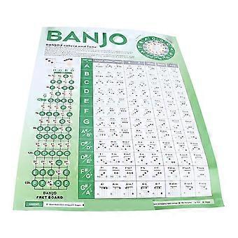 Banjo Chord Chart Feature and Tune Fingering Poster Coated Paper Finger Practice Diagram for Beginner