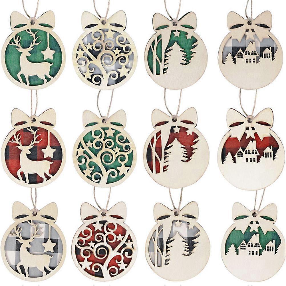 Mini Wood Ornaments 12Pcs Assorted Color Hanging Decorations Round Style For Christmas Party Home Decoration Beautiful Appearance