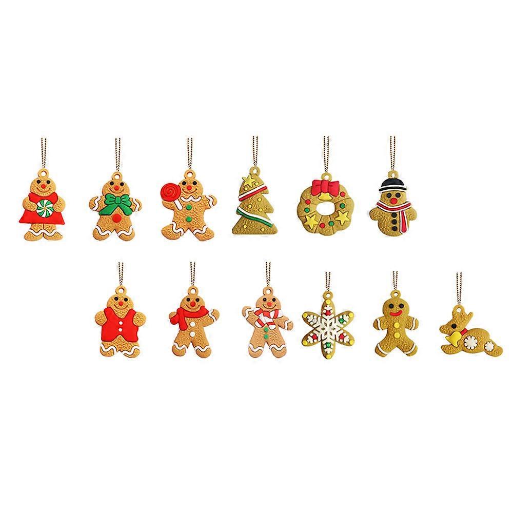 Mini Gingerbread Ornaments Gingerbread Man Pendant Christmas Party Home Decoration Plastic 1.57X1.18X0.08in 12Pcs