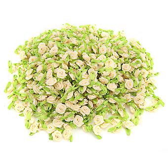 Mini Ribbon Rose Flowers with Leaf 450Pcs, DIY Sewing Craft Bow Decoration for Scrapbooking, Card Making, Embellishments