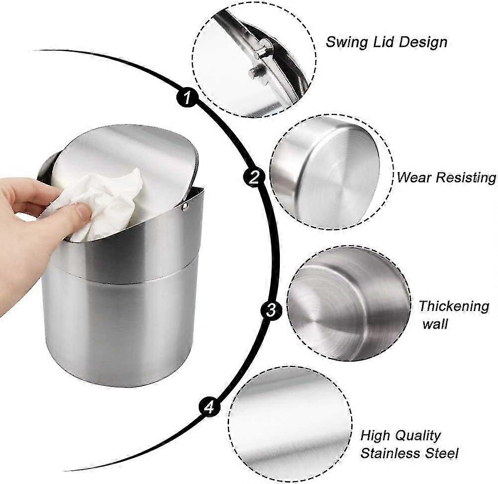 Mini Steel Office Bins Tabletop Bin Mini Lid Bin with Lid for Home Office (12 * 12 * 16.5CM, 1.5L)