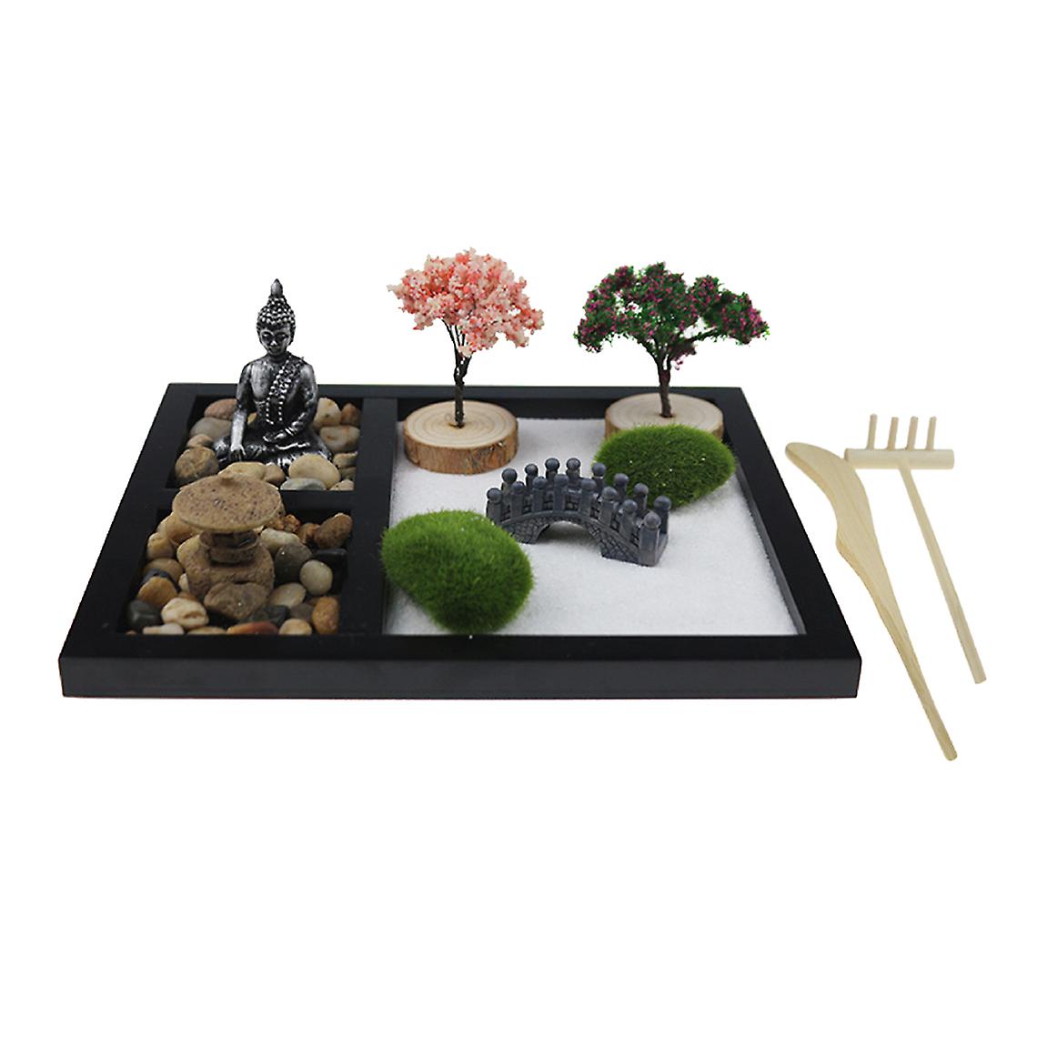 Mini Zen Garden Sandbox Kit With Buddha Statue, Rake, Sand, Bridge, Tree And Rocks, Home Office Desk For Stress Remedy, La