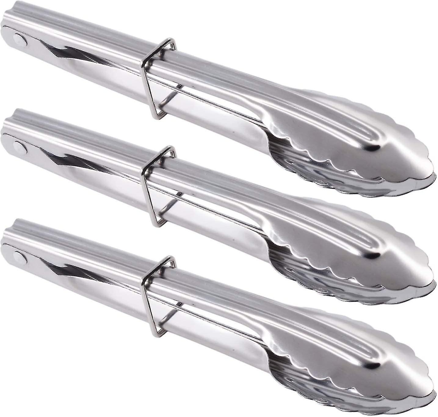 Mini Stainless Steel Serving Tongs Small Metal Tongs For Serving Food Cooking Salad Grilling (7-inch 3 Pieces)