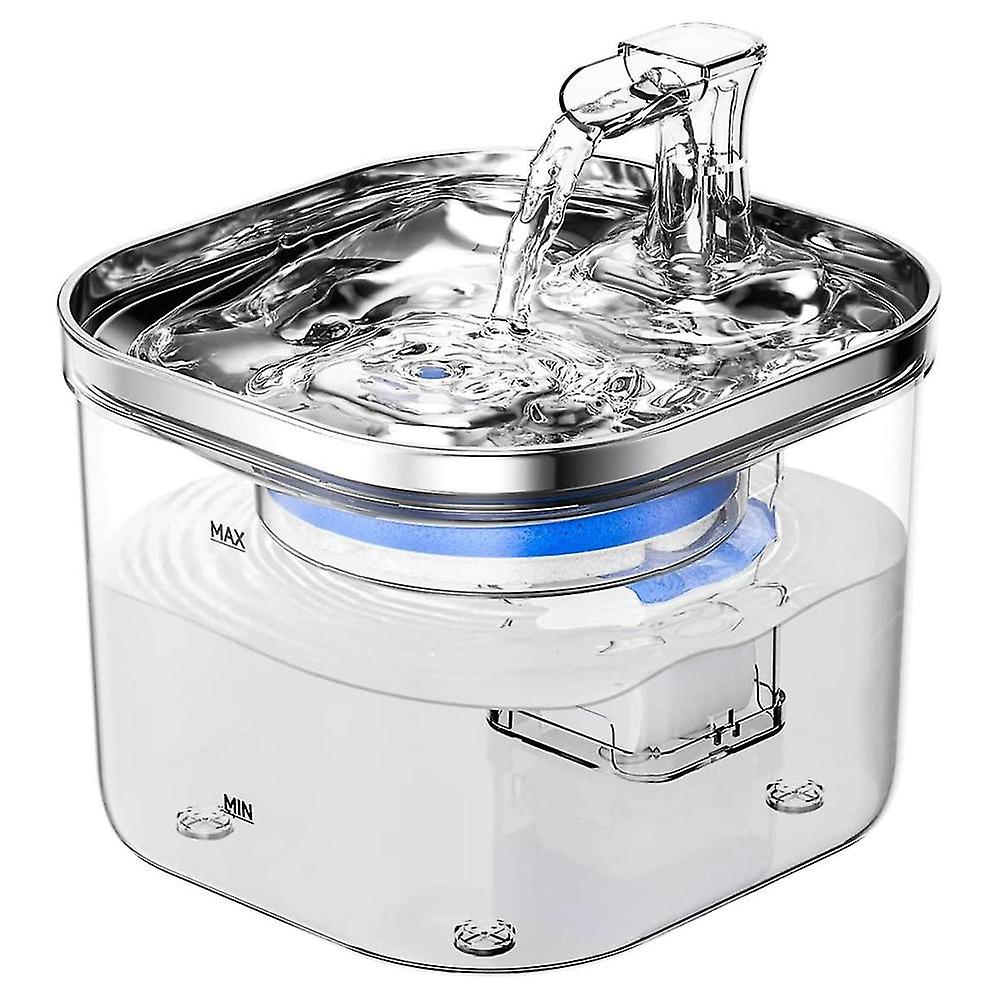 Water Fountain, 68oz/2l 304 Stainless Steel Fountain Water Bowl, Quiet Electric Automatic Pet Wate
