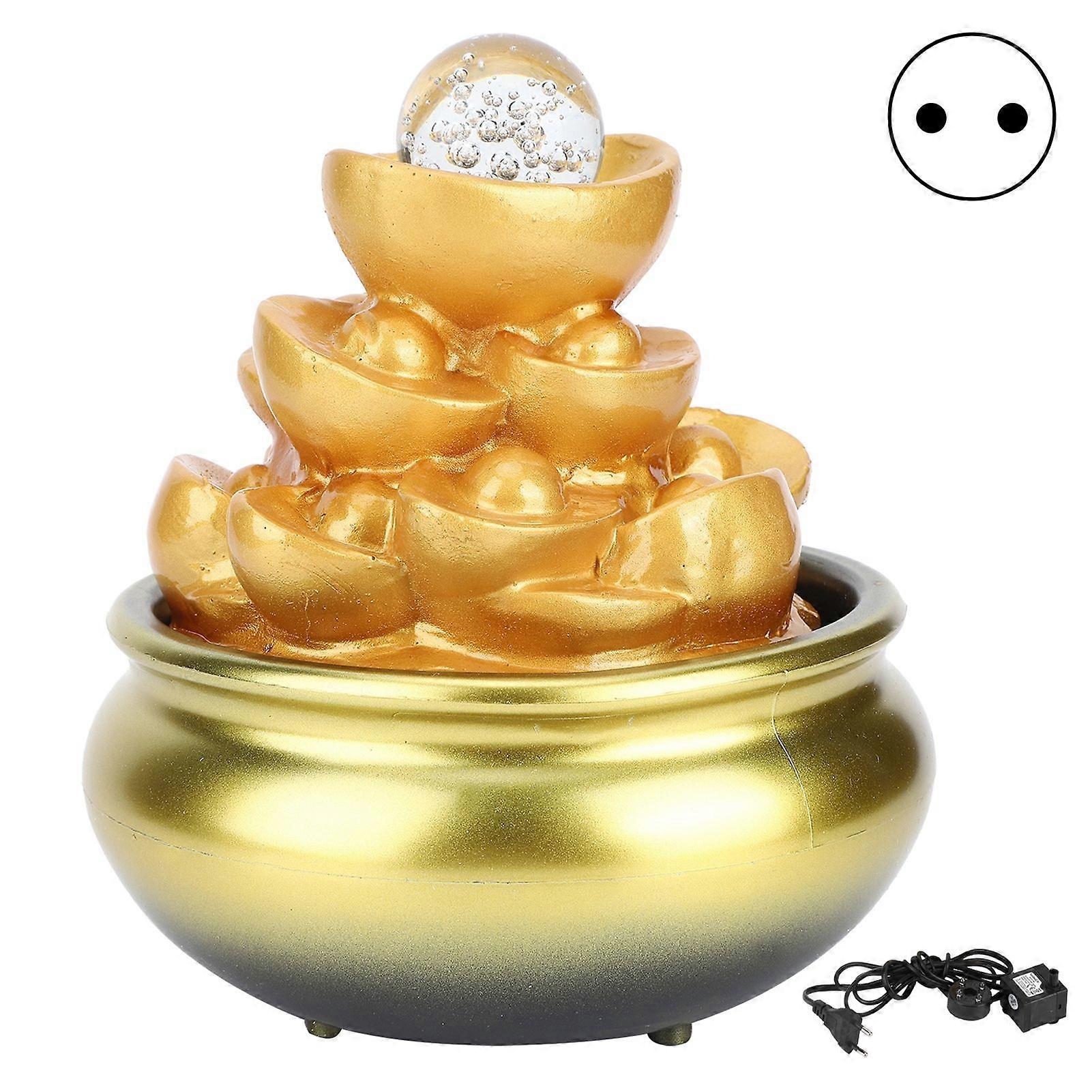 LED Water Fountain Innovative Resin Waterfall Ornament Art Crafts for Home Office Landscape DecorGold Coin EU Plug 220V