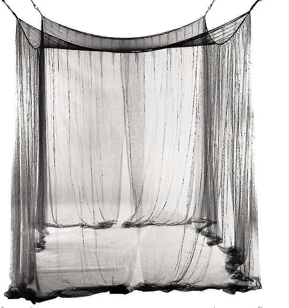 Mosquito Net For Double Bed, Rectangular Solid Color With 4 Openings, Easy Installation, Polyester, Black, 190cm X 210cm X 240cm