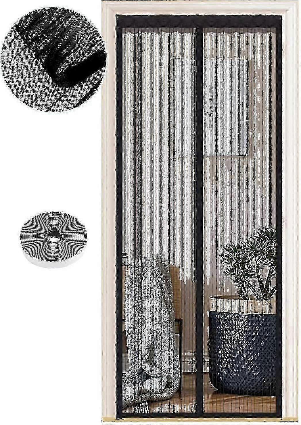 Magnetic Mosquito Net For Doors, 70 X 200cm, Powerful Magnets, Automatic Closing, Door Curtain Corridors Patio Without Drilling, Black Strip