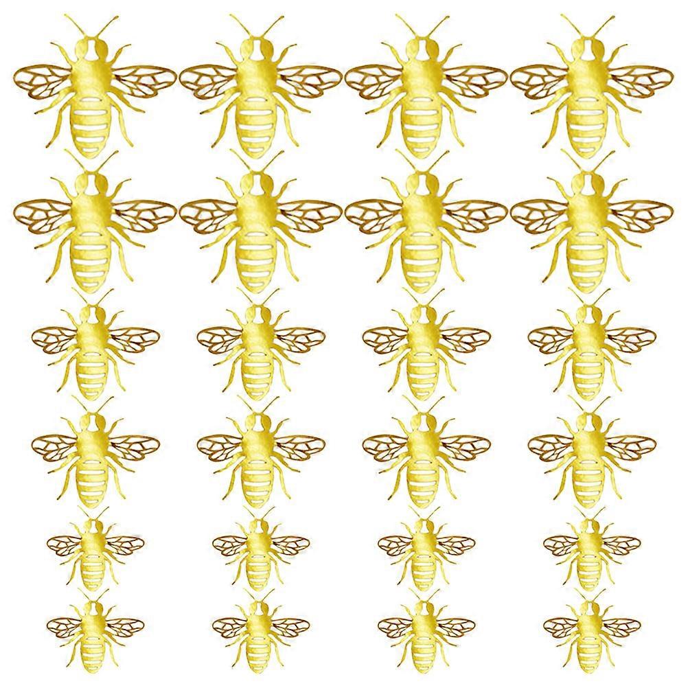 Bee Shaped Decal 3D Bee Wall Stickers Golden Decorative Wall Decor Three-Dimensional Design 24Set