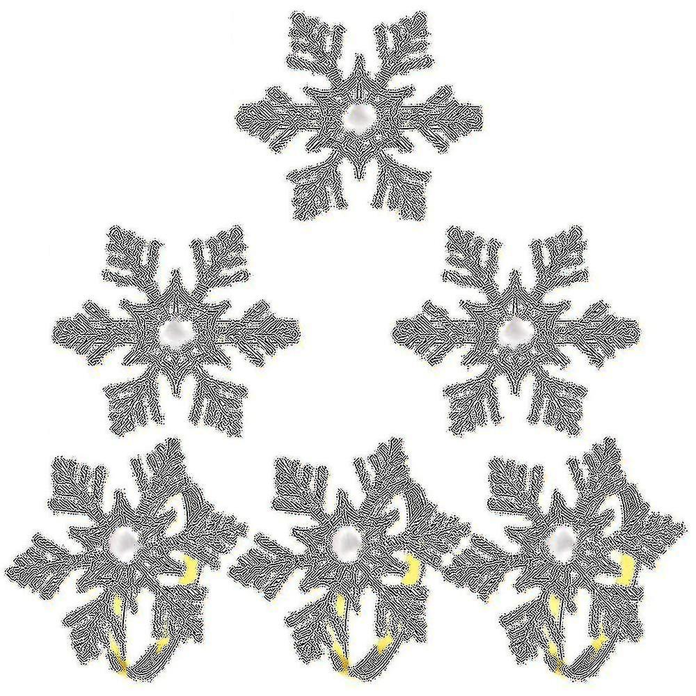 6 pieces of snowflake napkin rings, the size of each snowflake is about 1.61 x 1.61 inch/ 4.1 x 4.1 cm, the diameter of napkin buckle part is about 1.85 inches/ 4.7 cm, the size fits most cloth napkins and will keep your cloth napkins in good shape to keep them organized on the tableThe highlight on the table: the shape of the snowflake napkin holder is a simple snowflake shape, and the details are very exquisite; A faux pearl is studded as an ornament in the middle of the snowflake, making the whole napkin ring more elegant; Use these exquisite napkin ring to decorate your Christmas tableSturdy material: pearl napkin ring is made of alloy, which is hard and not easy to break; You can recycle these napkin rings for many times to make them a decorative highlight of your dining table; The surface of the napkin ring is well polished and smooth so that if it is stained during use, it can be wiped clean with a wet sponge or wet towelSuitable for different occasions: Xmas napkin buckle set is not only the choice of family dining table, but also the choice of restaurant decoration; Snowflake napkin ring can not only be placed on the table of Christmas or other winter festivals, but also is suitable for the decoration of daily table, wedding and other occasionsMeet your different needs: Christmas snowflake napkin ring can be applied to decorate the napkin cloth and keep the napkin cloth in good shape on the table; You can also use the snowflake napkin ring to decorate wine bottles, cakes, bouquets, etc.. In addition, you can also give it to others as a beautiful giftColour: goldMaterial: metalPackage Contents:6 x napkin ringsOnly the above package content, other products are not included.Note: Light and different displays may cause the color of the item in the picture a little different from the real thing. The measurement allowed error is +/- 1-3cm.