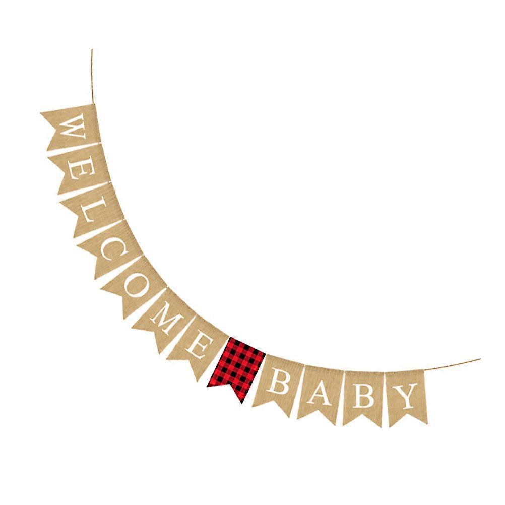 Welcome Burlap Banner, Natural Linen Party Decoration, Assorted Color Pull Flag for Wall, Window or Tree Branches – Birthday Shower Decoration