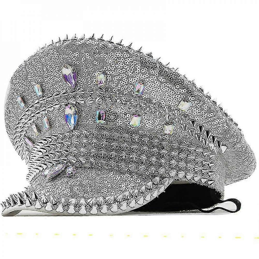 Women Men Steampunk Military Hat With Gold Rivet Queen Sequin Burning Captain Sergeant Hat Rave Festival Bachelorette Part ERY