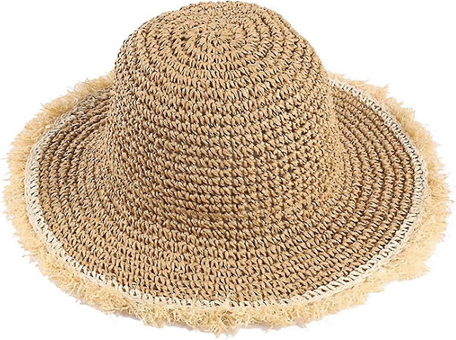 Womens Summer Frayed Straw Bucket-sun-hats Floppy Wide Brim Beach Straw Bucket Hat (large/60cm)-Good