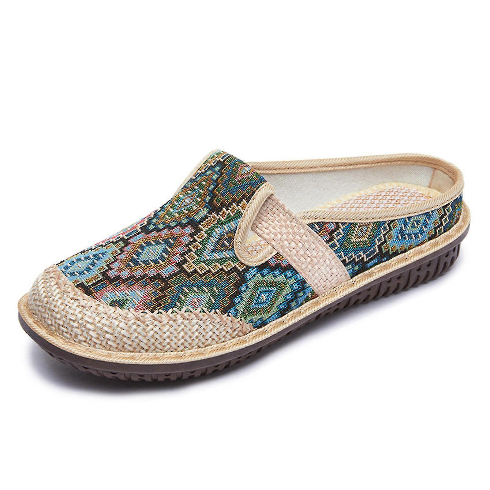 Women's Linen Flats Loafers Ladies Casual Comfortable Indoor Shoes Suitable For Walking Camping