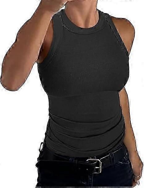 Womens Sleeveless High Neck Casual Basic Cotton Ribbed Fitted Tank Top