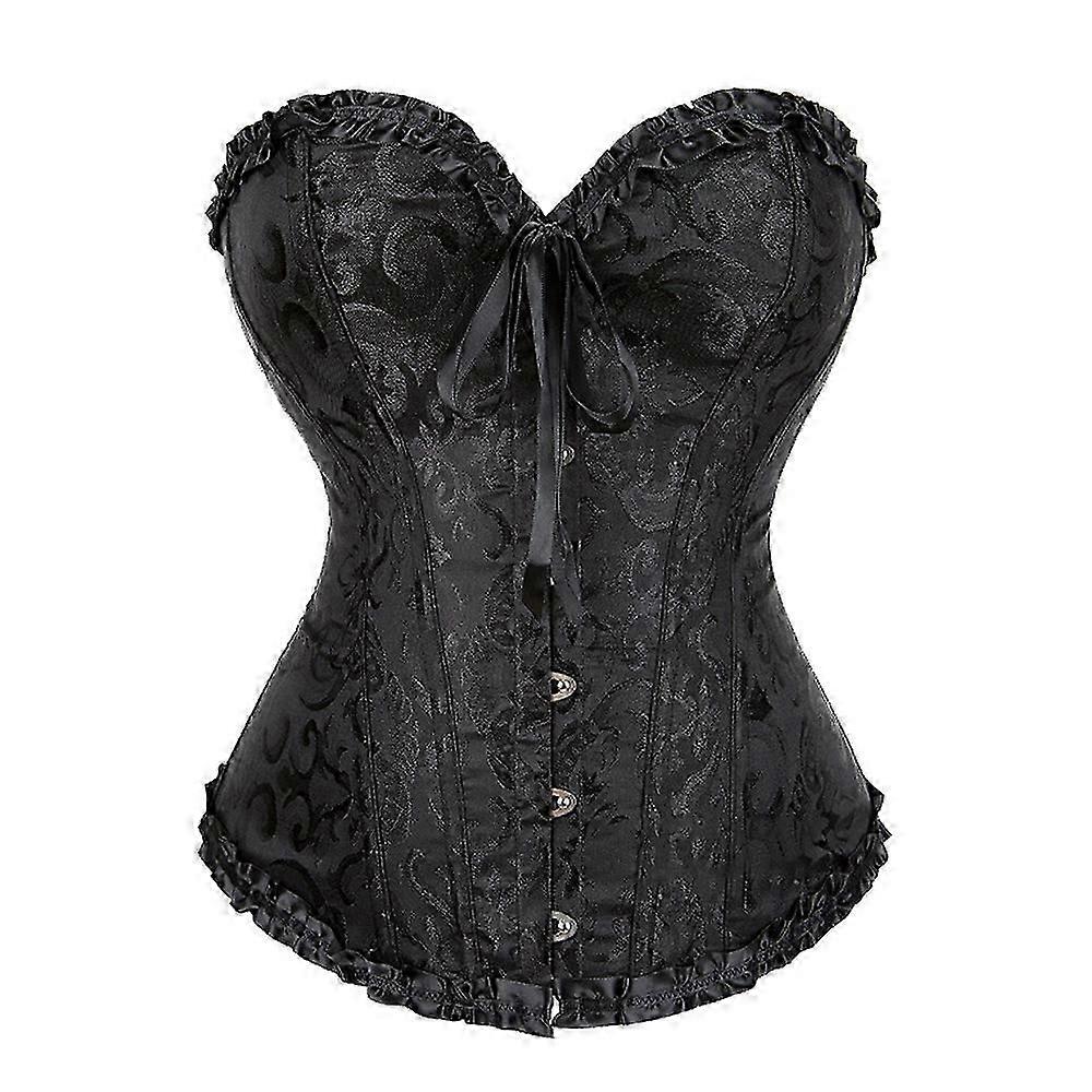 Women's Lace Up Boned Overbust Corset Bustier Lingerie Bodyshaper Top Princess corset - Black