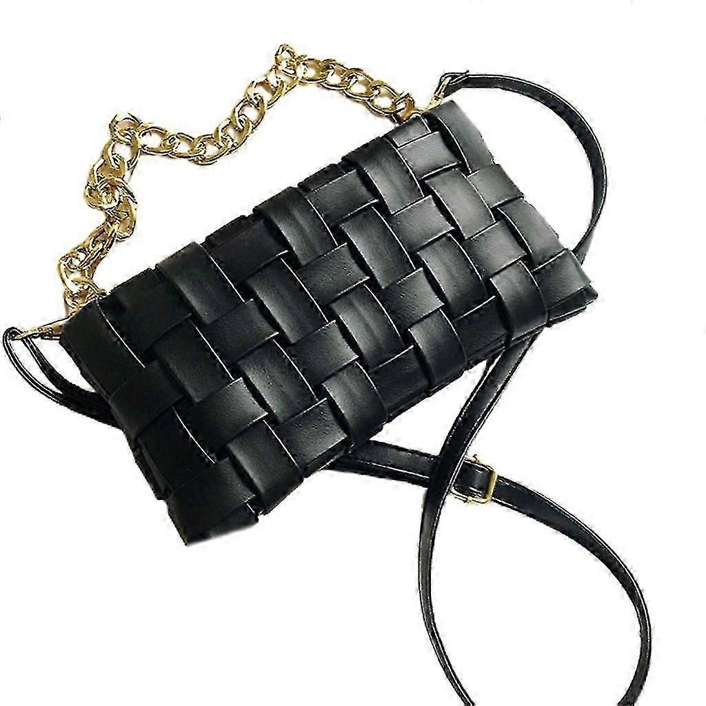 Women's Evening Handbags Braided Shoulder Bag Pu Leather Weave Purse With Chain-XK10382