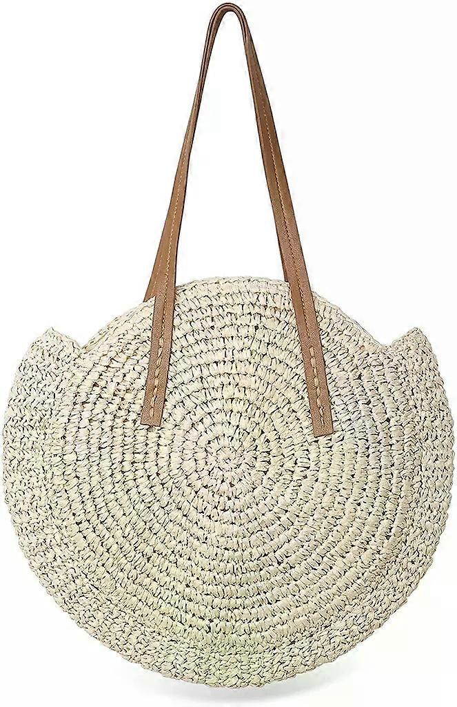 Women's Woven Bag Round Beach Bag Straw Summer Crossbody Bags Handmade Shoulder