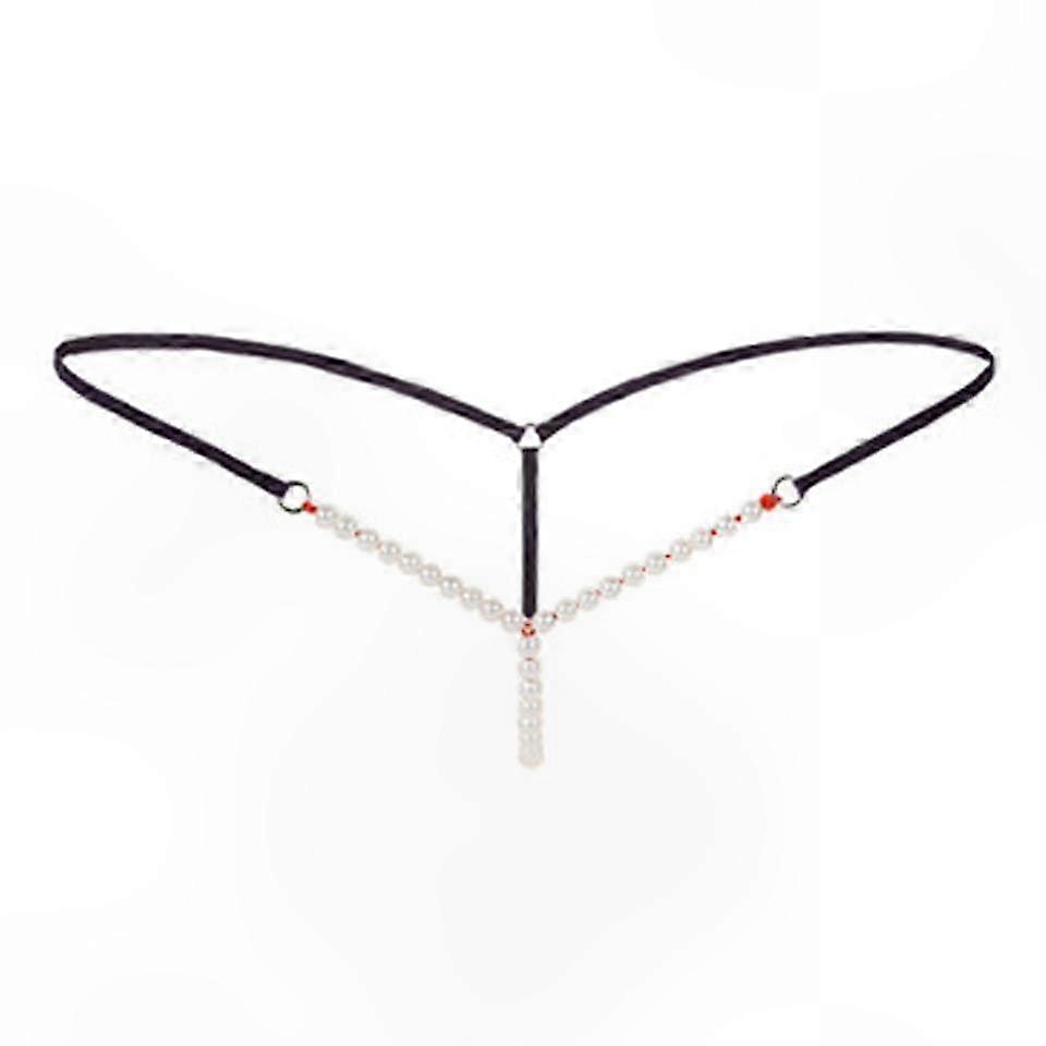 Women's Lace Trim Thong Underwear with Pearl Detail Crotchless Design Lingerie G-String Panties for Ladies Tanga Style