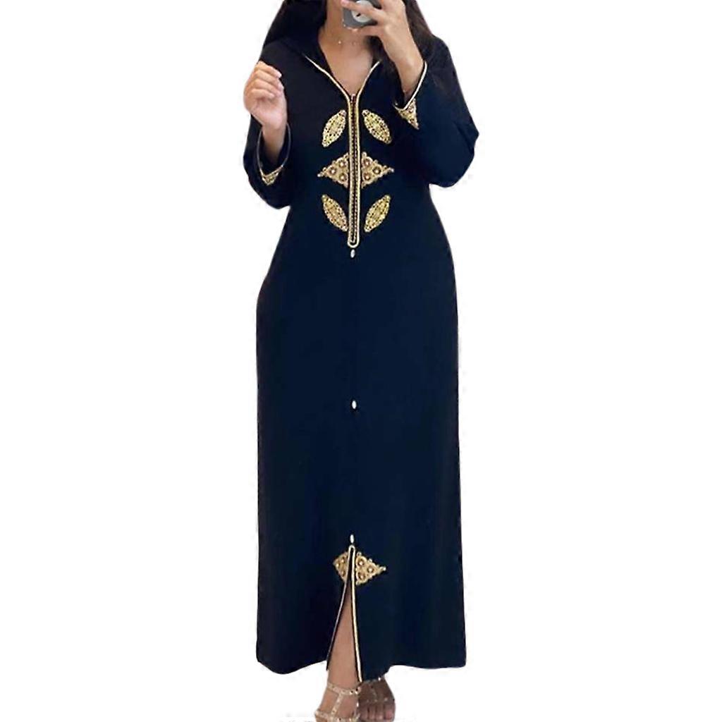 Women's V-Neck Elegant Printting Dubai Dresses Patchwork Long Sleeve Robe