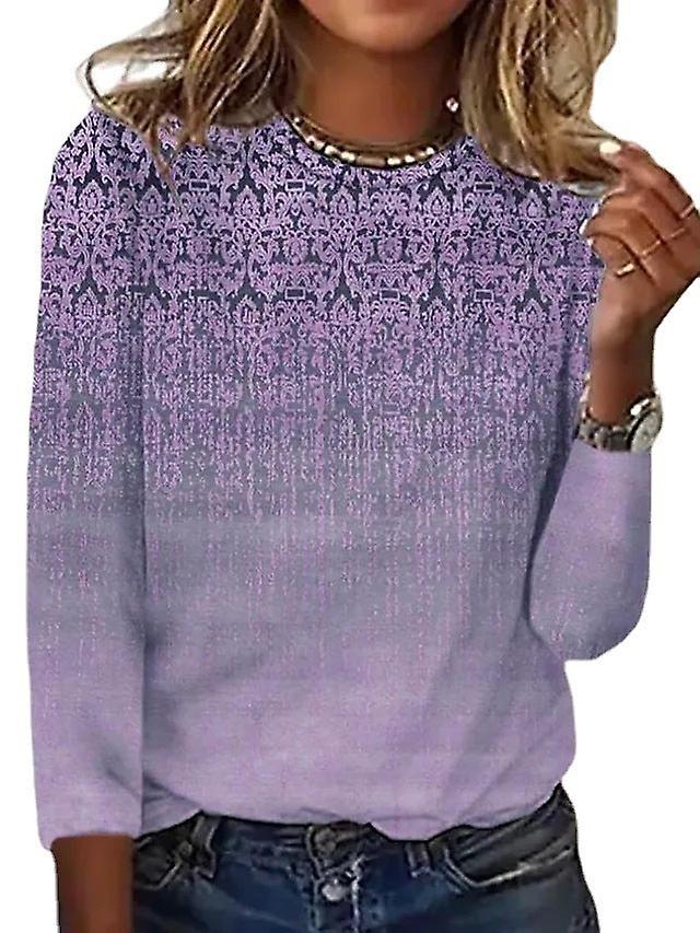 Women's Round Neck T-shirt Casual Dotted Printed Long Sleeve