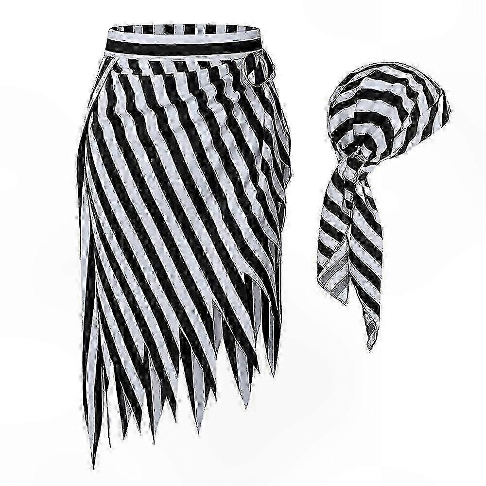 Women's Renaissance Pirate Costume Blouse with Corset Belt and Skirt for Cosplay Halloween Fancy Dress Stripe Headscarf Outfit
