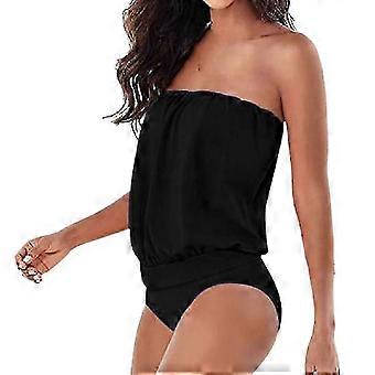 Womens Solid Bandeau One-piece Swimwear Ladies Summer Beach Strapless Unpadded Monokini Swimsuit Bathing Suit - ZHENV