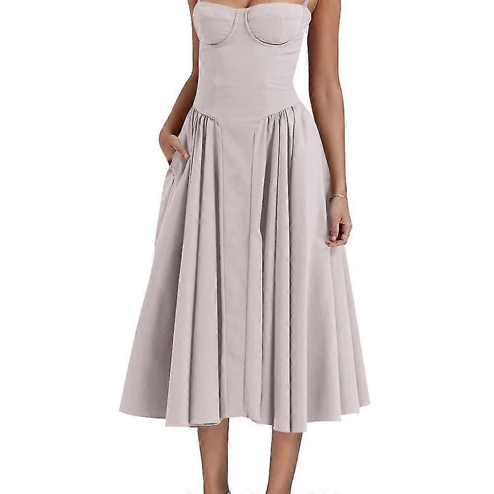 نسائي سباغيتي حزام مطوي بدون أكمام تمثال نصفي ميدي مع جيوب -GSL-YuJia