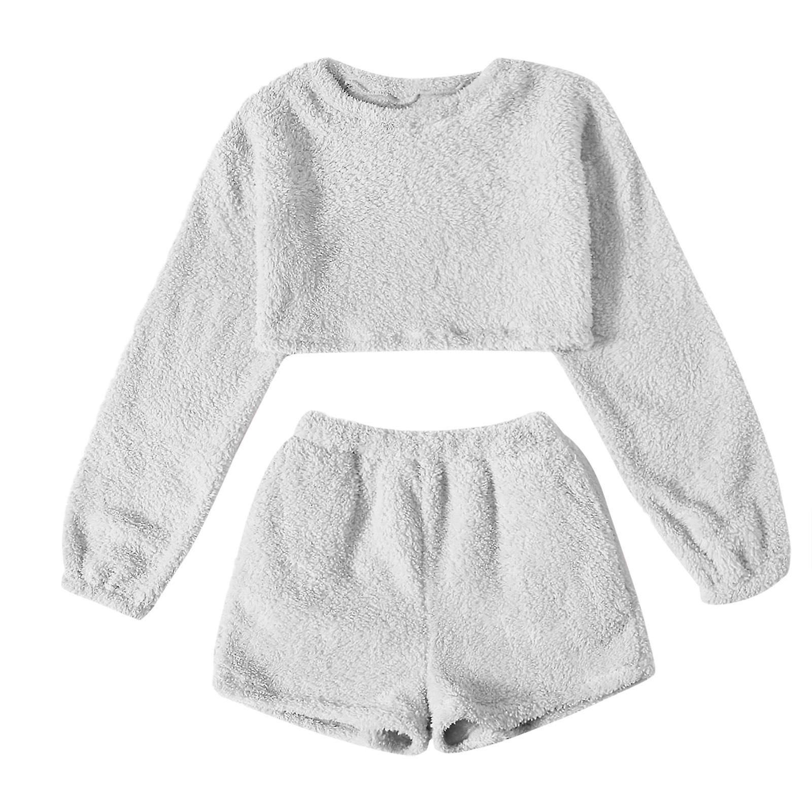 Women's Fuzzy Lounge Casual Pajamas Sets Long Sleeve Fleece Pullover And Shorts Pants Set 2 Piece Fluffy Loungewear Sleepwear