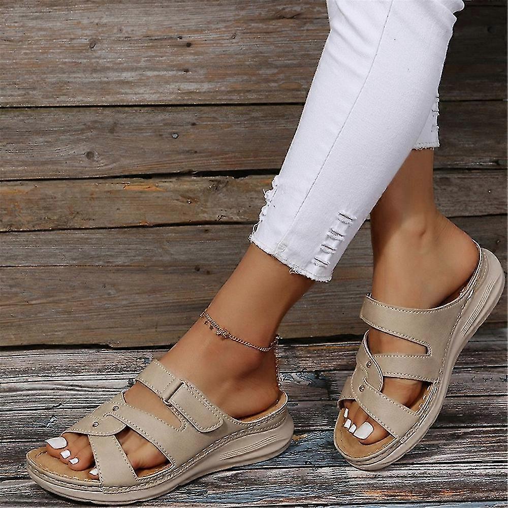 Womens Cross Straps Open Toe Wedge Sandals Summer Beach Casual Shoes Slippers-MXBC