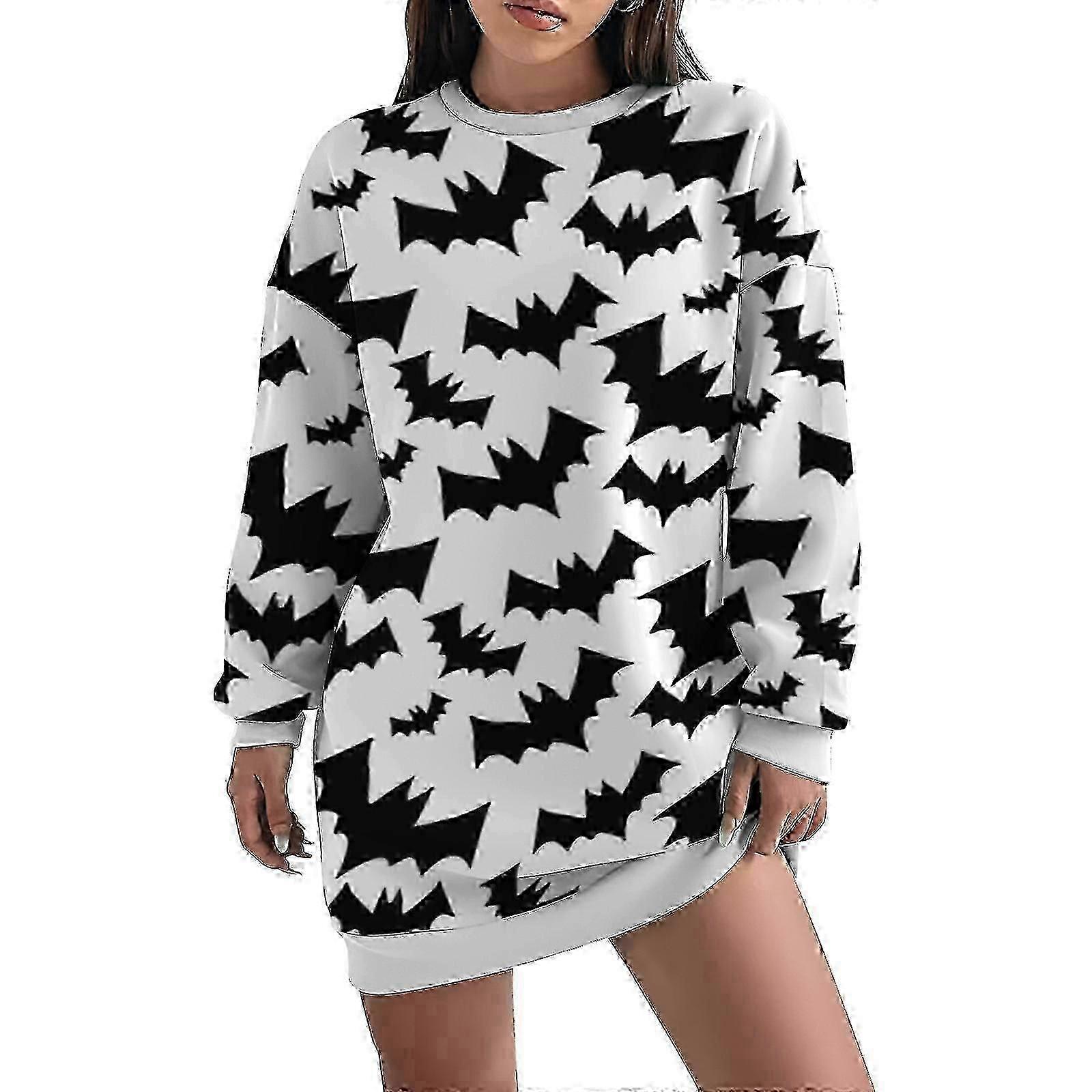 Women'S Loose Straight Dresses Round Neck Long Sleeve Pullovers Dress Halloween Theme Printed