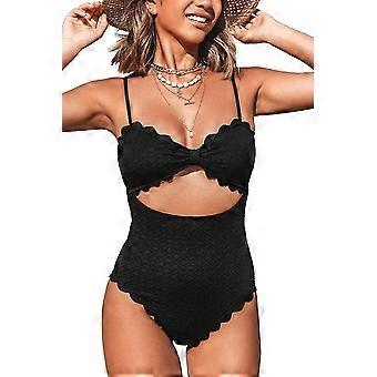 Women's One Piece Swimsuit Sexy Cutout Scallop Trim Bathing Suit Swimming Costume-Good
