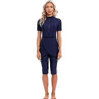 نسائي محتشم ملابس السباحة الإسلامية الإسلامية ملابس السباحة كم قصير سحاب أمامي أعلى السراويل الحجاب 3 قطع زي السباحة S-4xl Xinmu-MXBC