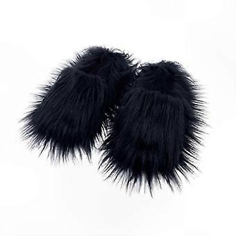 Women's Cozy Winter Slippers Open Toe Faux Fur Non-Slip Indoor Shoes Warm Plush Flats Furry Slide-On Casual Home Footwear