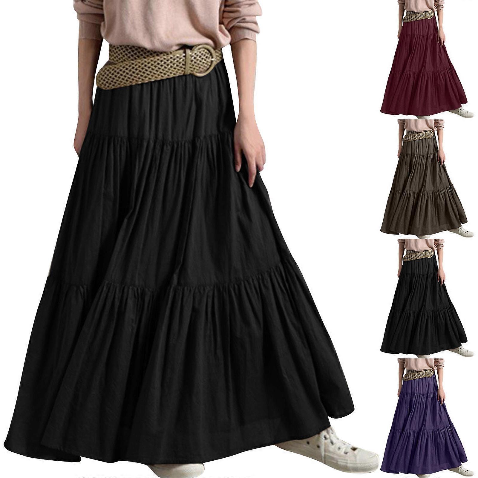 Women'S Ruffled Pleated Skirt Spring Autumn Casual Color Trend Retro Style Flowy A-Line Skirts